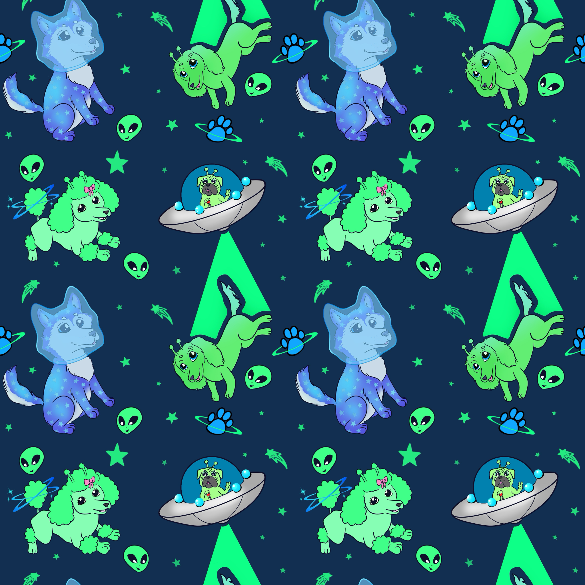 All new alien dog themed grooming scrubs!
